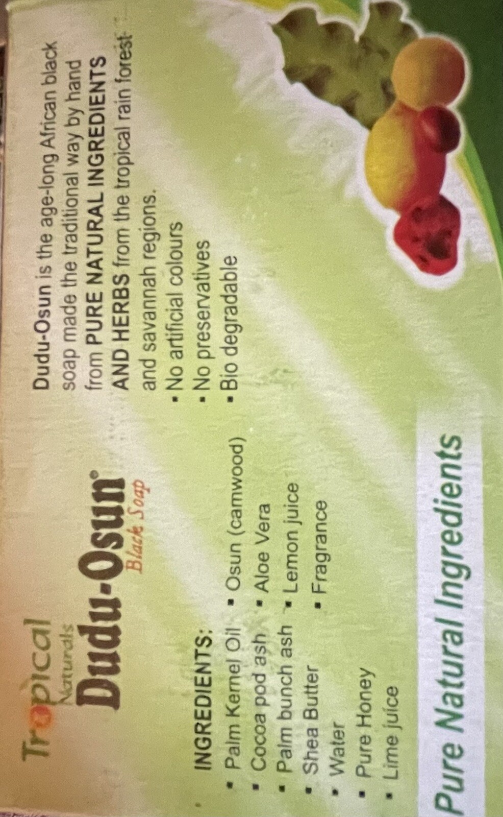 Ingredients: Honey, Palm Oil, Shea Butter, Aloe Vera, Cocoa Butter, Lemon