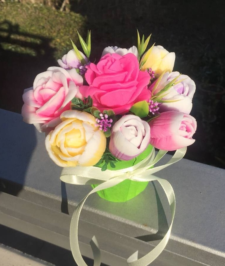 как выглядит Handmade bouquet from soap flowers for present or decoration gift фото