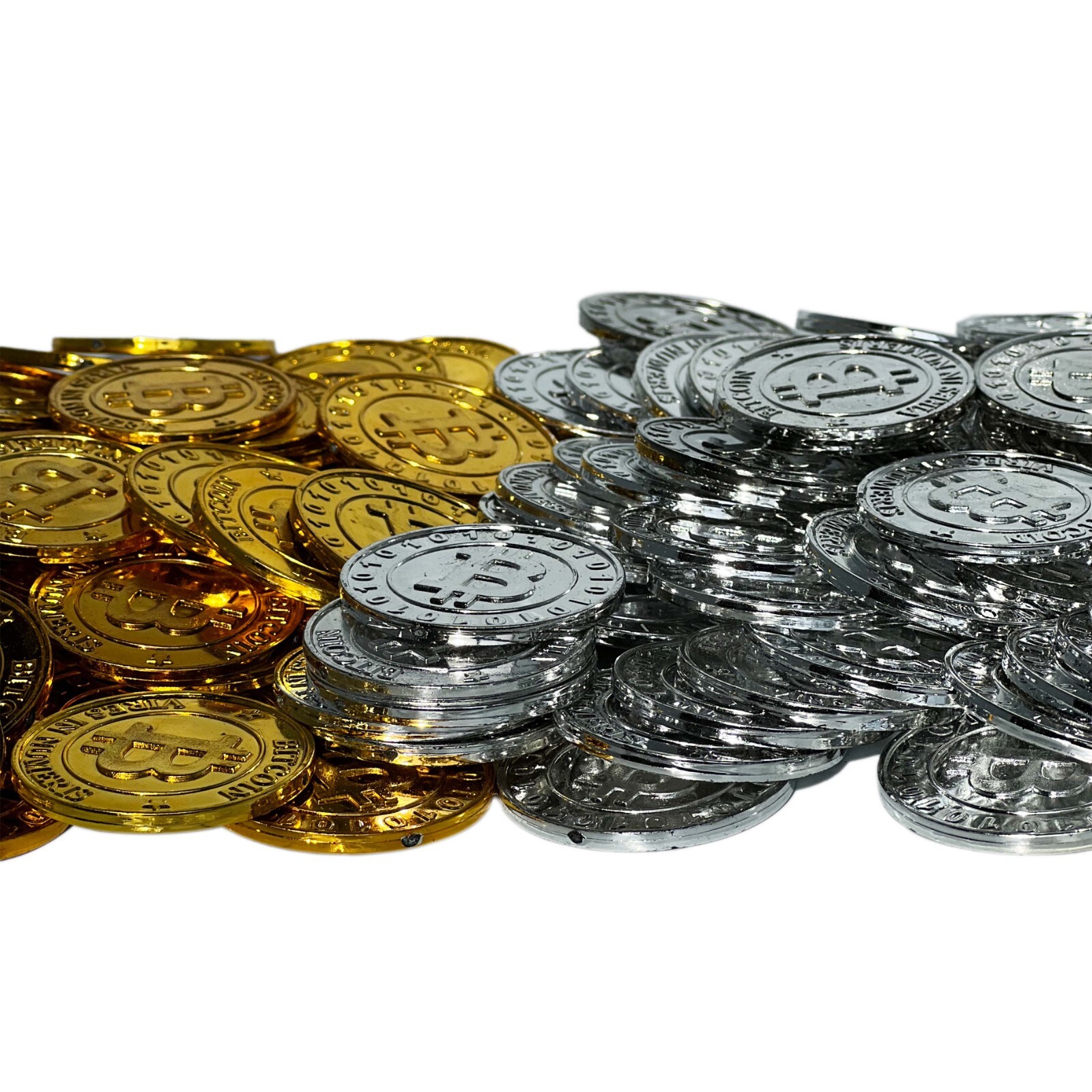 Plastic Bitcoins for Office Decoration, Party, Etc 100 Pieces, Gold Silver
