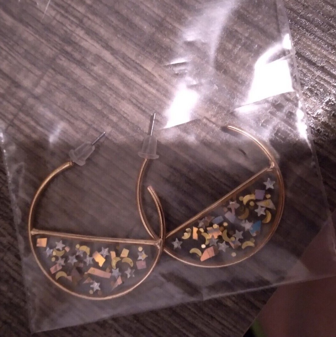 gold Hoops resin filled moon stars glitter Fashion post Earrings for women
