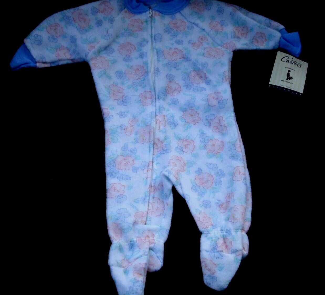 Vintage Carter's Infant Girls Floral Fleece One Piece Pajamas 0-6 Months NEW