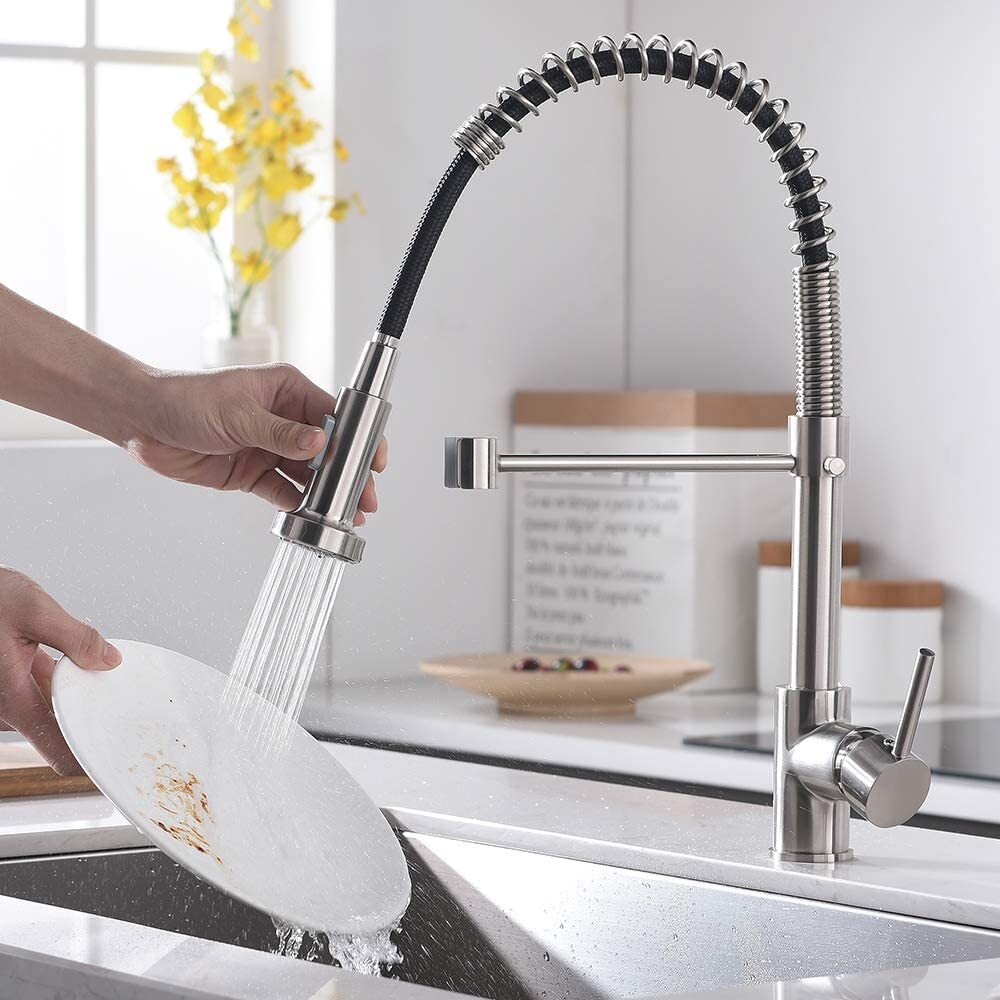 Single Handle Pull Down Spring Kitchen Sink Faucet with Sprayer Swivel Mixer Tap