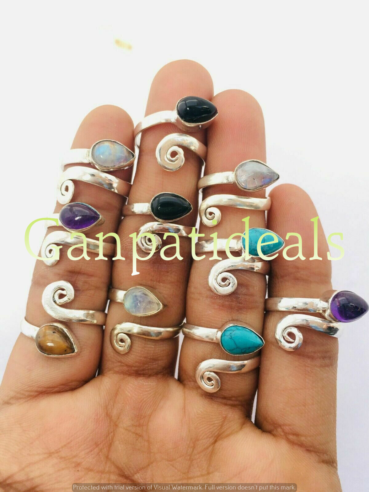 как выглядит Turquoise Mix Gemstone 5pcs Wholesale Lot 925 Sterling Silver Plated Rings фото