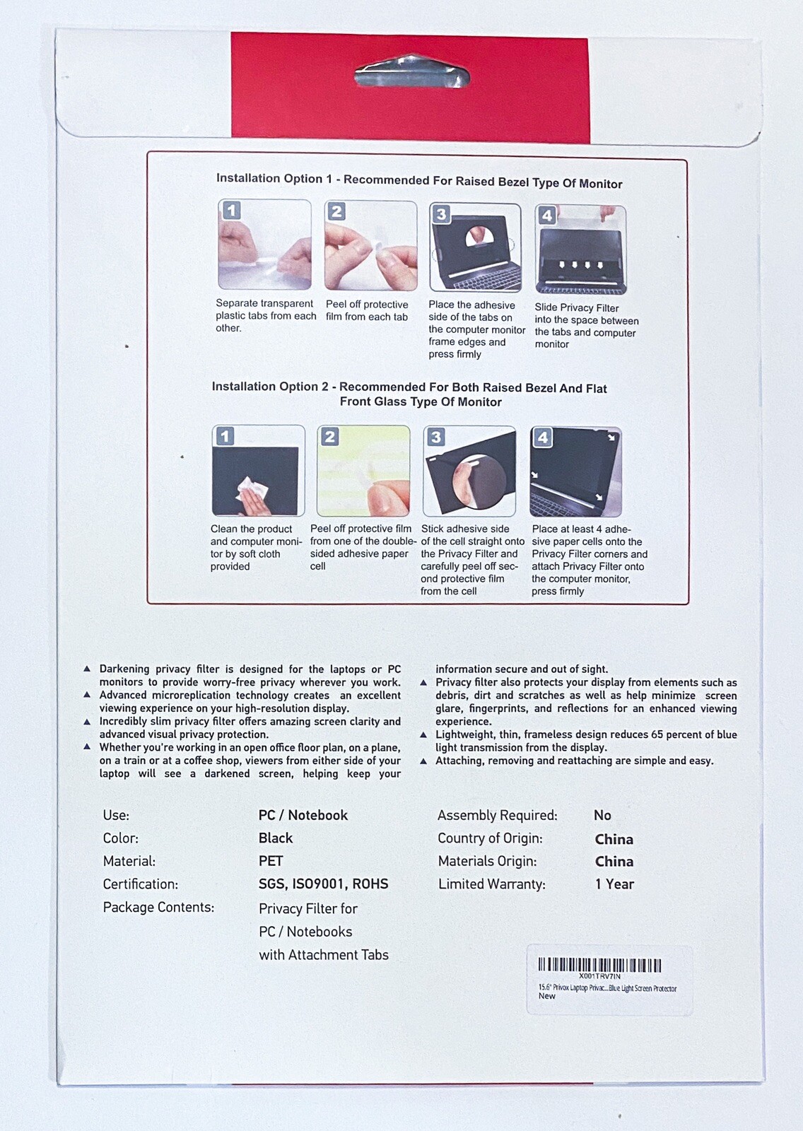 как выглядит PRIVOX 15.6" Laptop Premium Privacy Screen Filter 16:9 Widescreen Monitor фото