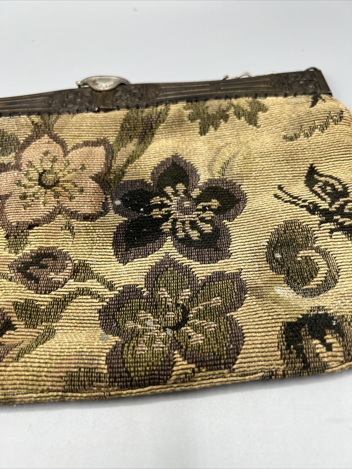 Floral Tapestry Carpet Bag, Art Deco, Antique Handbag Purse Rare