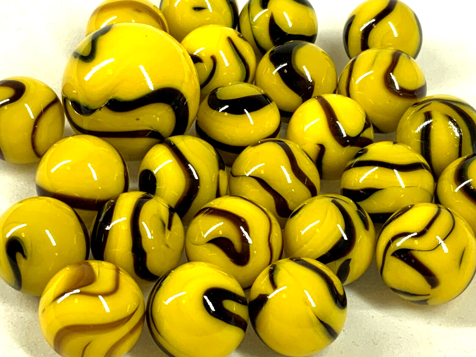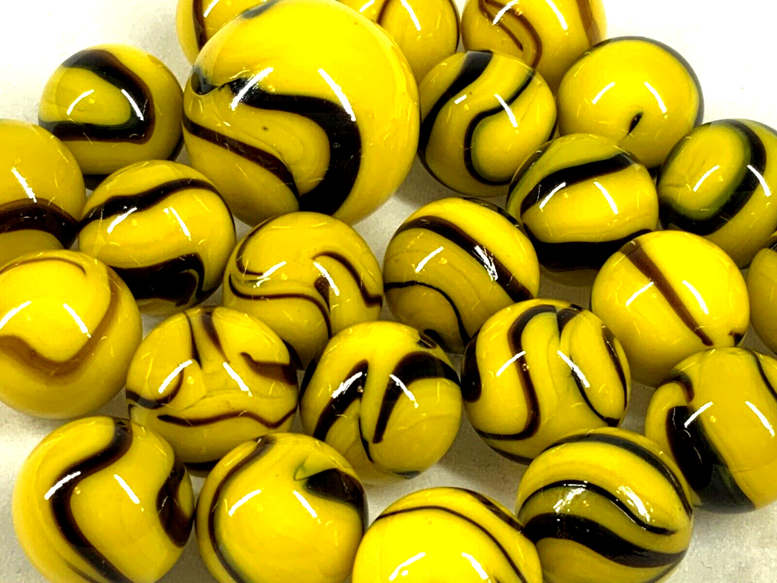 25 Marbles BUMMBLE BEE Stripes Yellow Glass game pack Shooter Swirl