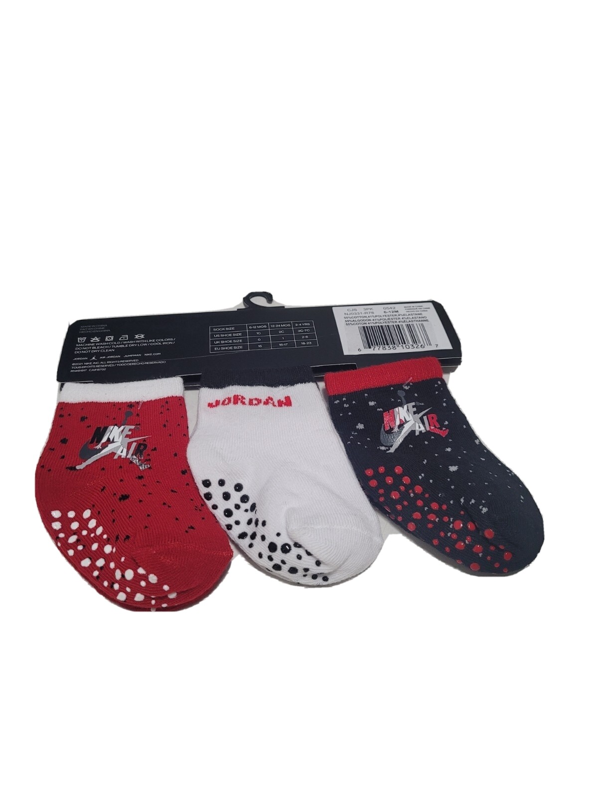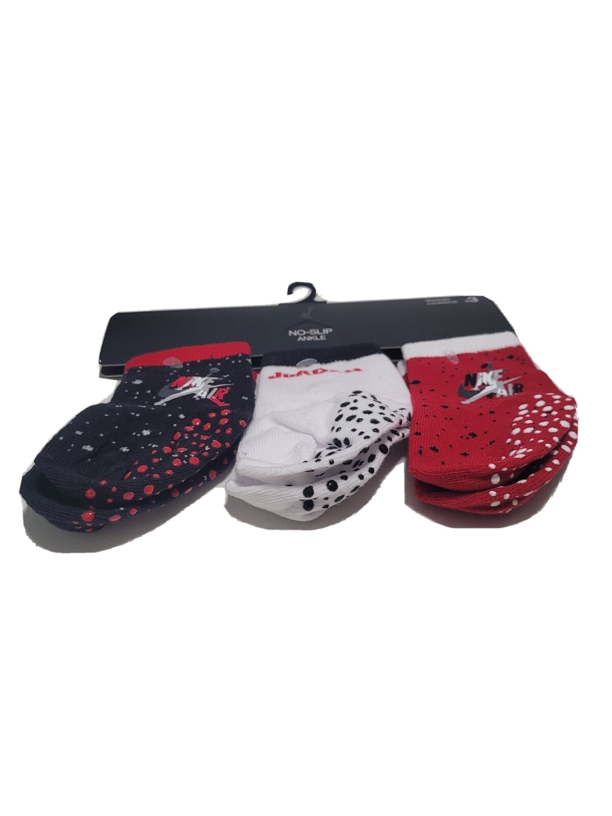 как выглядит Nike Air Jordan Newborn 3-Pair No-Slip Ankle Socks Black/White/Red, 6-12 Months фото