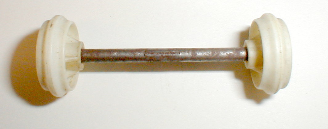 как выглядит 1 pair Large White Wire Wheels 11/16" T X 3/16" W by ELDON Axle 1960 1/32nd NOS фото
