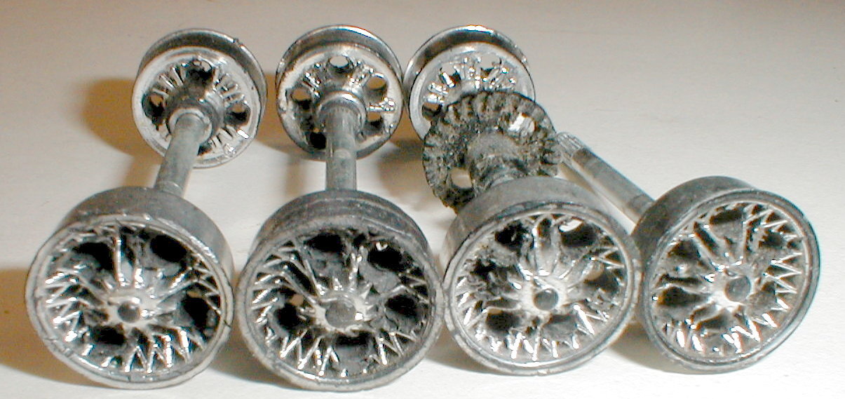 7 Large 1963 CUSTOM DRILLED Chrome Wire Wheels 4 Axle Gear Strombecker Slot Car