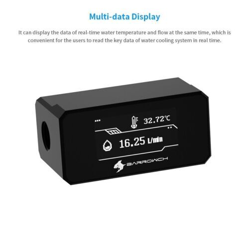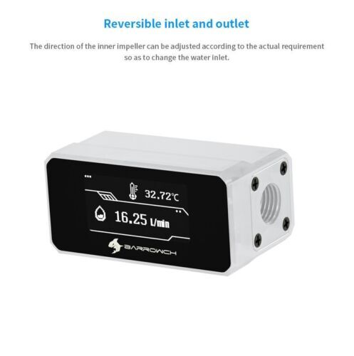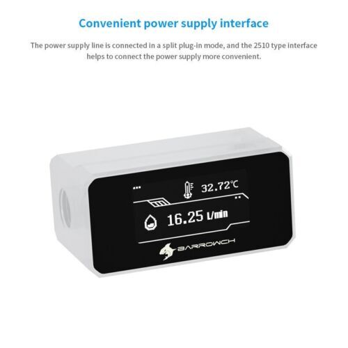 BarrowCH Digital OLED Display Inline Flow Meter Thermometer Water Cooling White