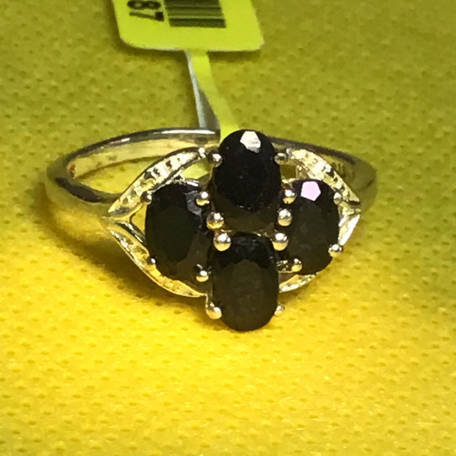 как выглядит Sleek Black Sapphire Ring Sz9 TGW 2.58cts .925 Sterling Silver Setting фото