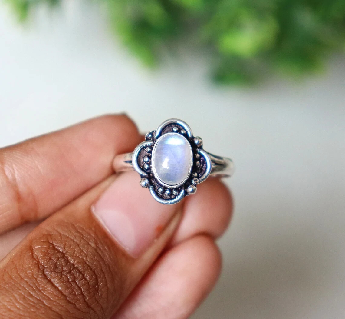 Moonstone Ring 925 Sterling Silver Ring Handmade Jewelry Gift for her All Sizes