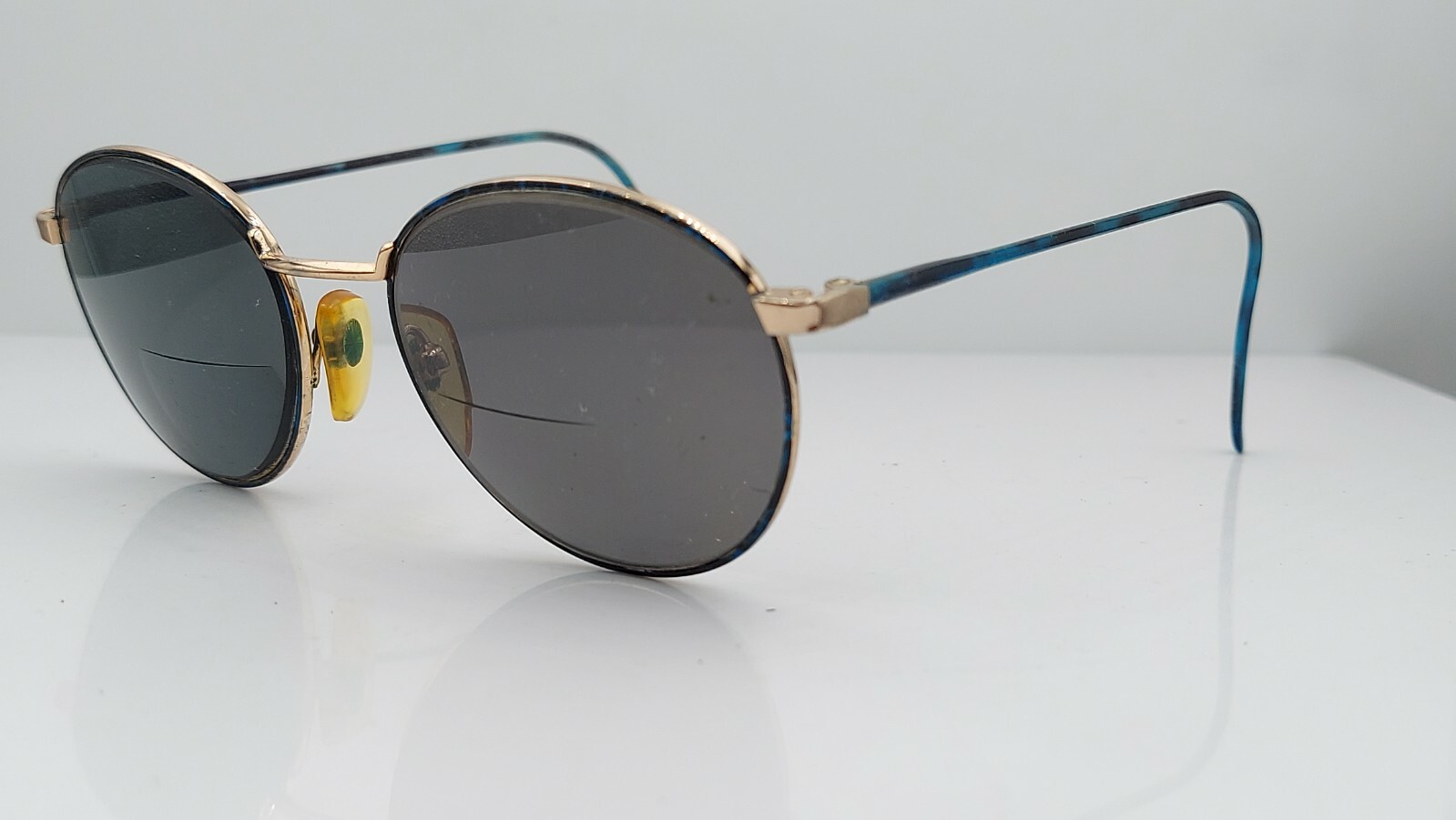 как выглядит Vintage Blue Gold Metal Oval Sunglasses FRAMES ONLY Japan фото