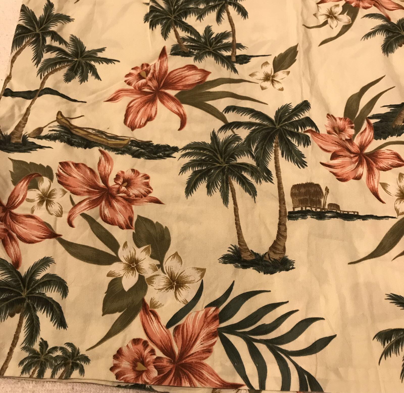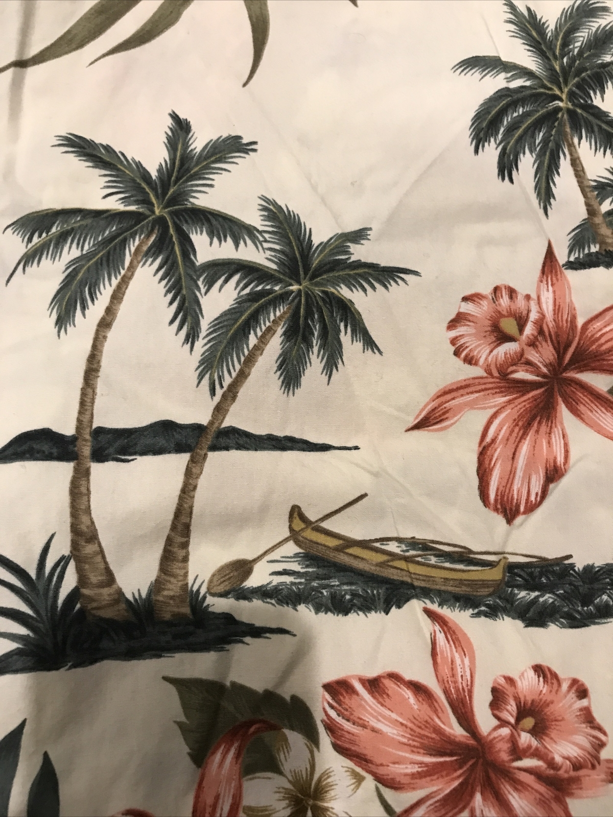 VTG RJC MENS HAWAIIAN SHIRT BEACH CANOE PALM TREES HIBISCUS L