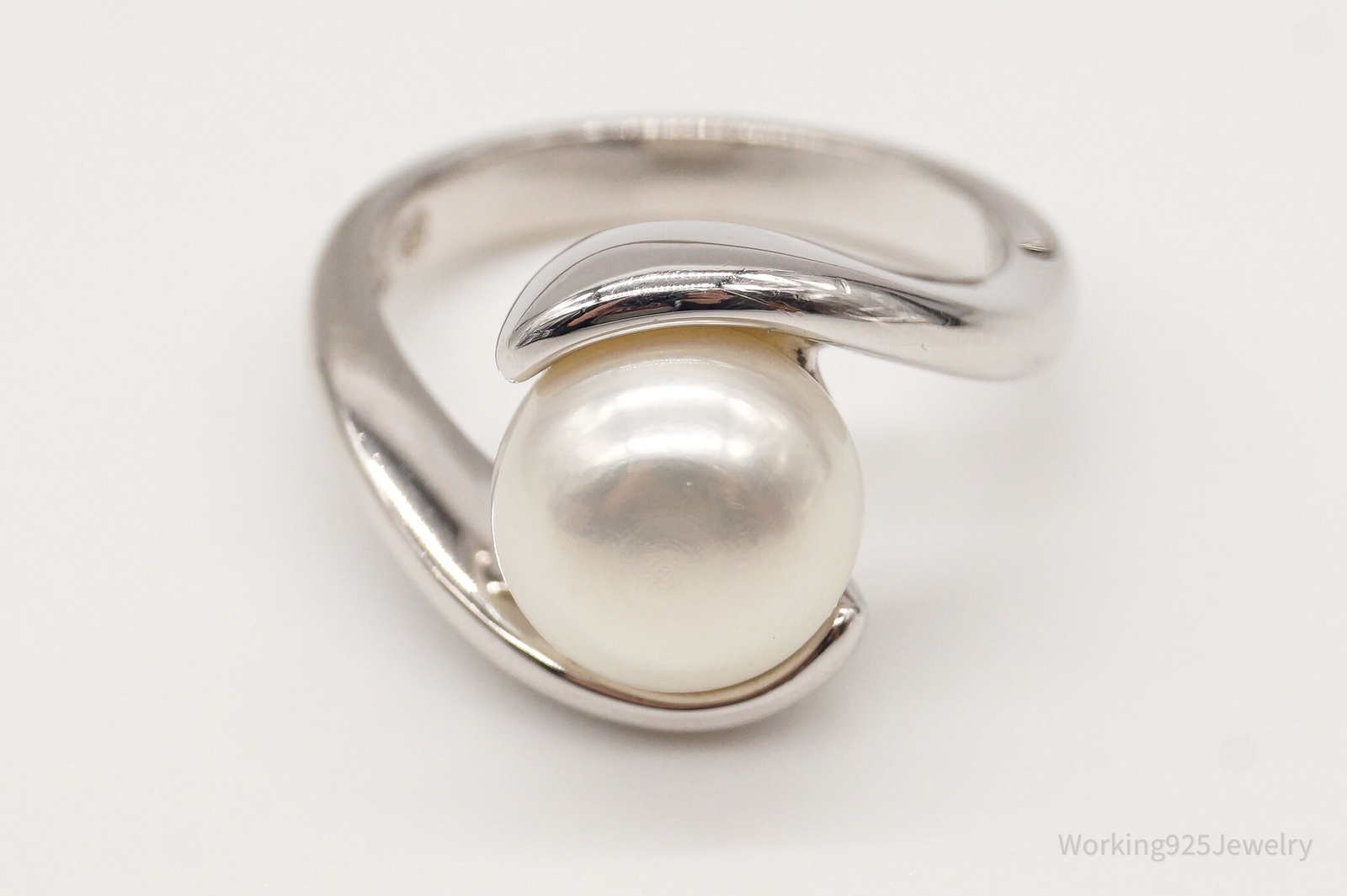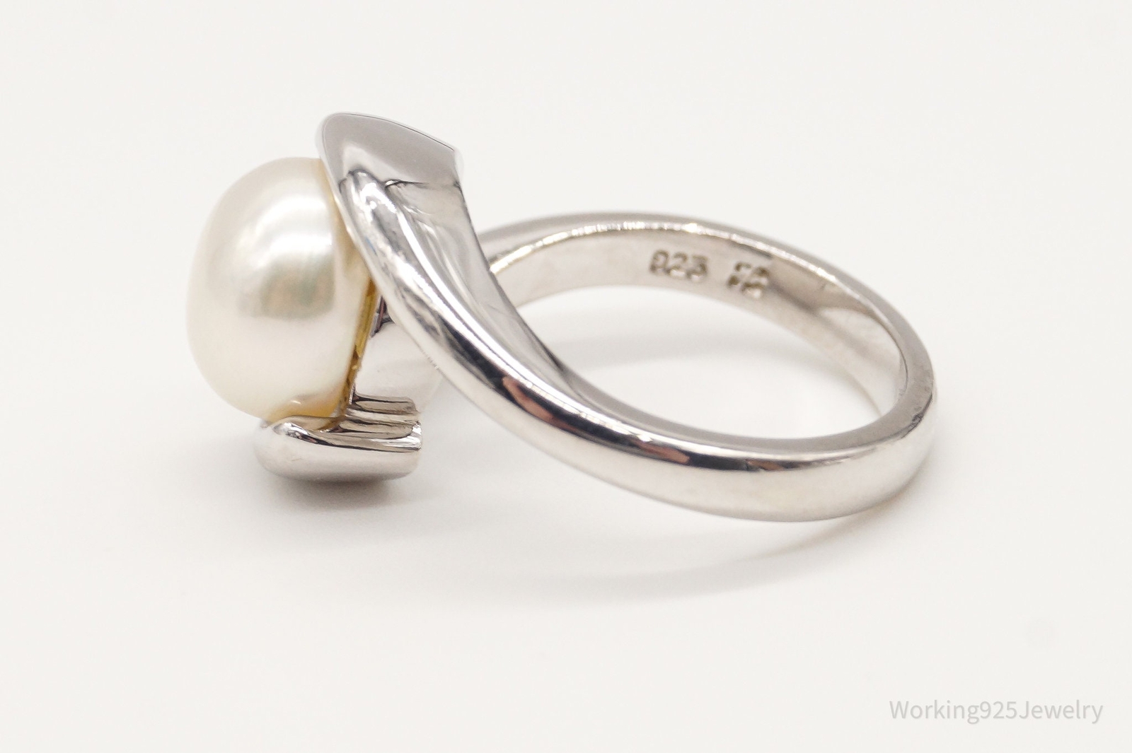 как выглядит Vintage Pearl Sterling Silver Ring - Size 6.25 фото