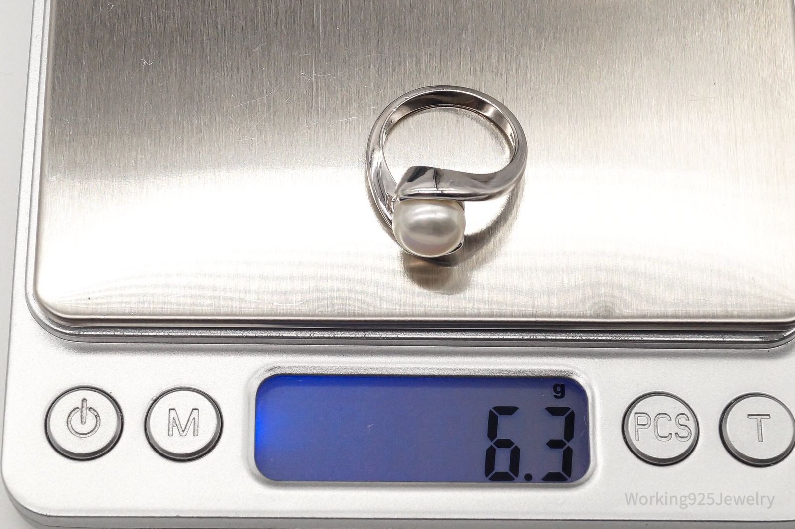 Vintage Pearl Sterling Silver Ring - Size 6.25