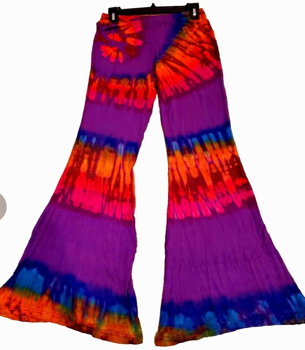 TIE DYE Purple Orange Pink Bell Bottom Pants OS-NEW