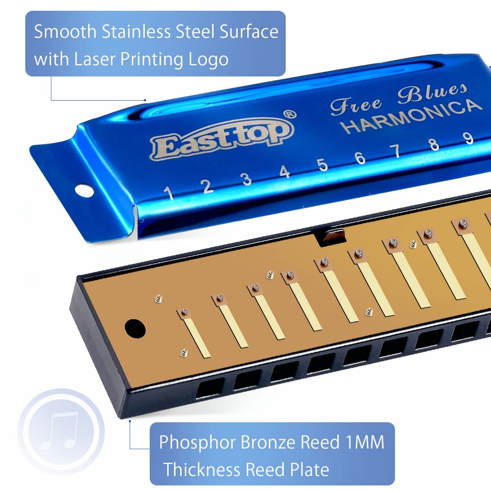 EASTTOP Diatonic Harmonica Set of 7 Blues Harp Mouth Organ Harmonica 10Holes US