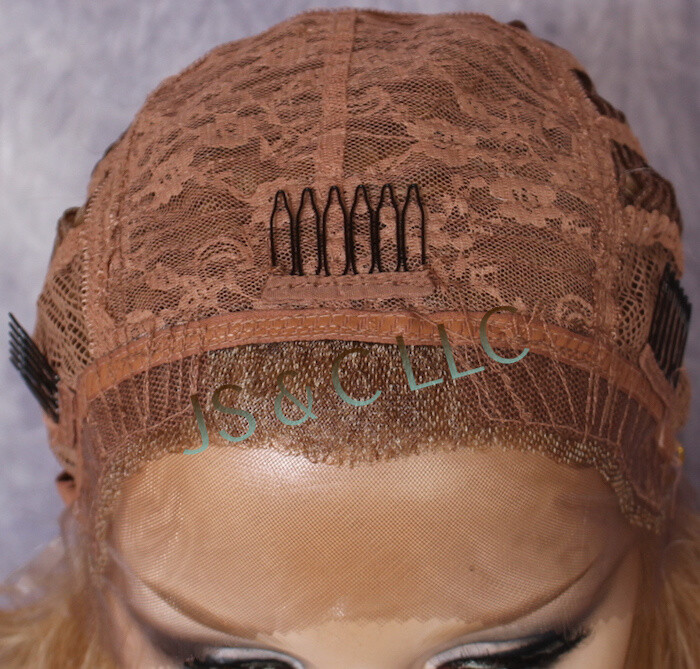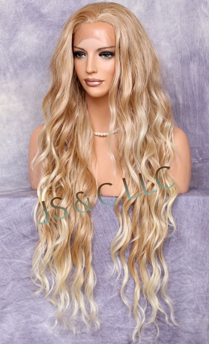 Human Hair Blend HEAT OK Blonde mix Lace Front Wig Wavy long 37 JSTA T27/613