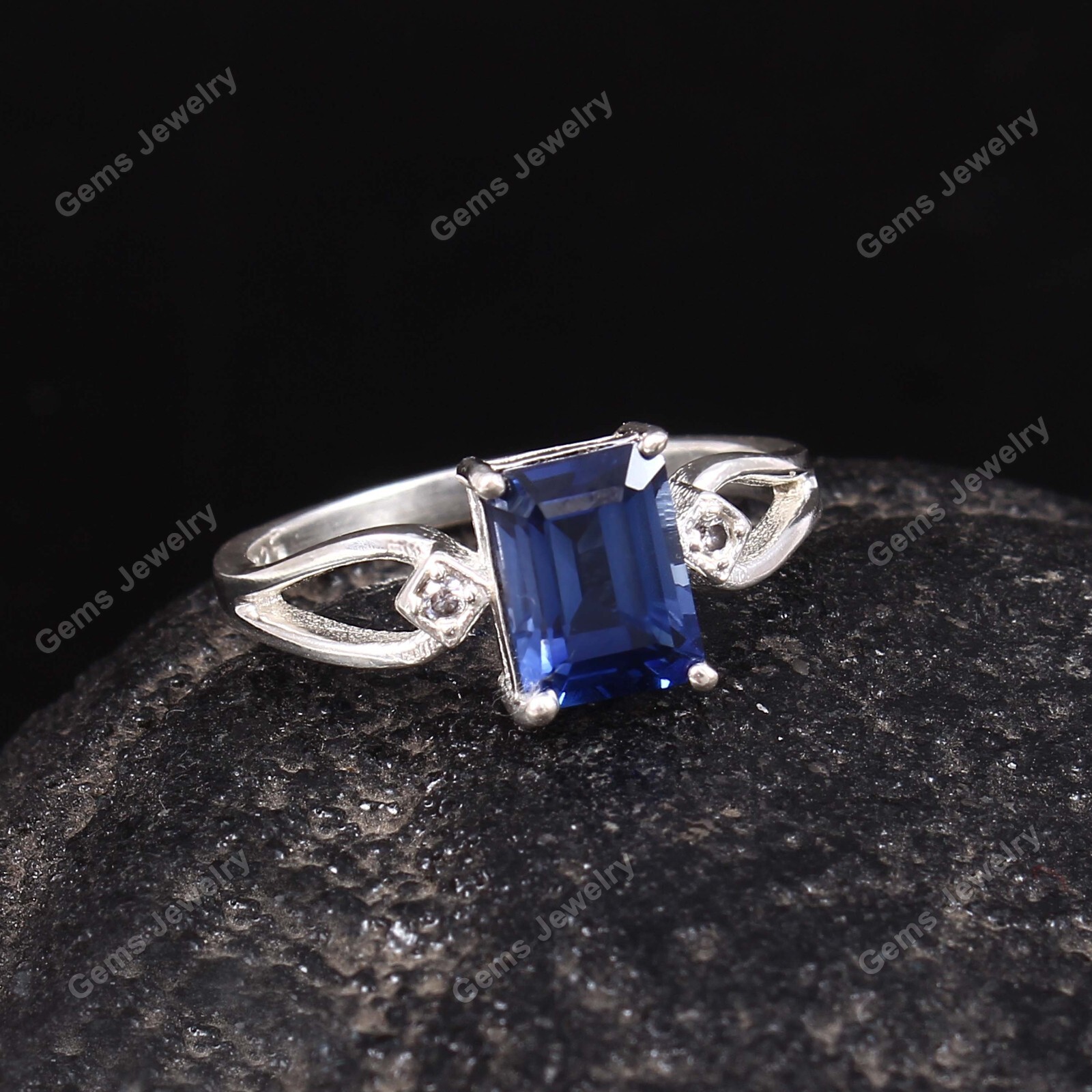 как выглядит Flawless Blue Sapphire Ring Radiant Ring Gemstone Ring Gift For Her Wedding Ring фото