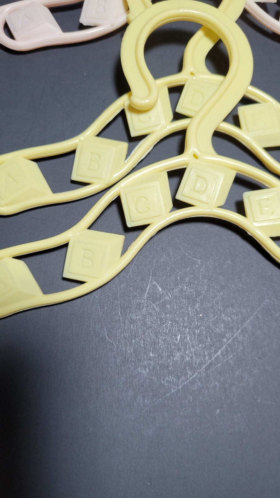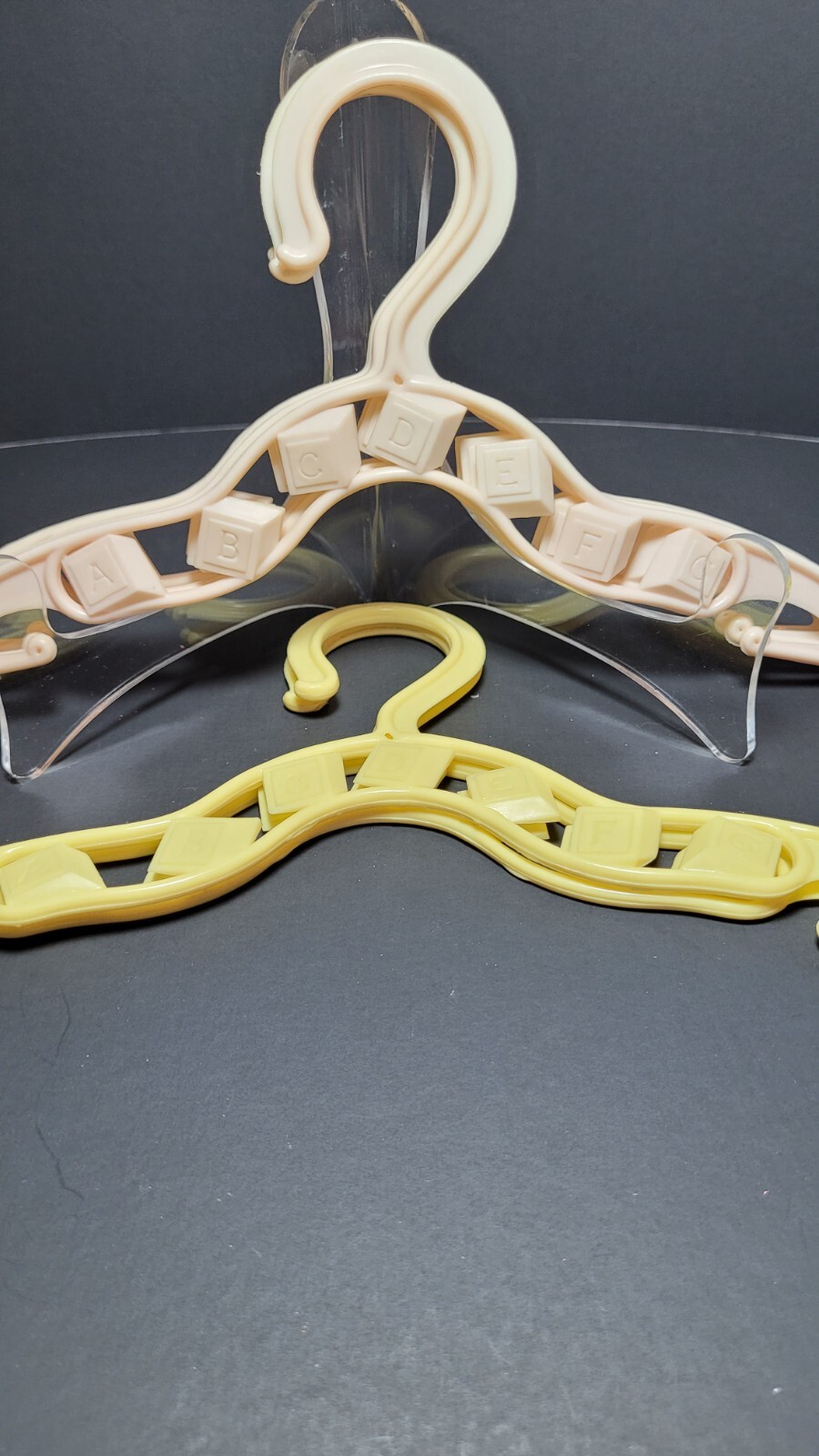 Vintage Baby Clothes Hangers Nursery ABC's 3 pink 2 yellow plastic 10 in long