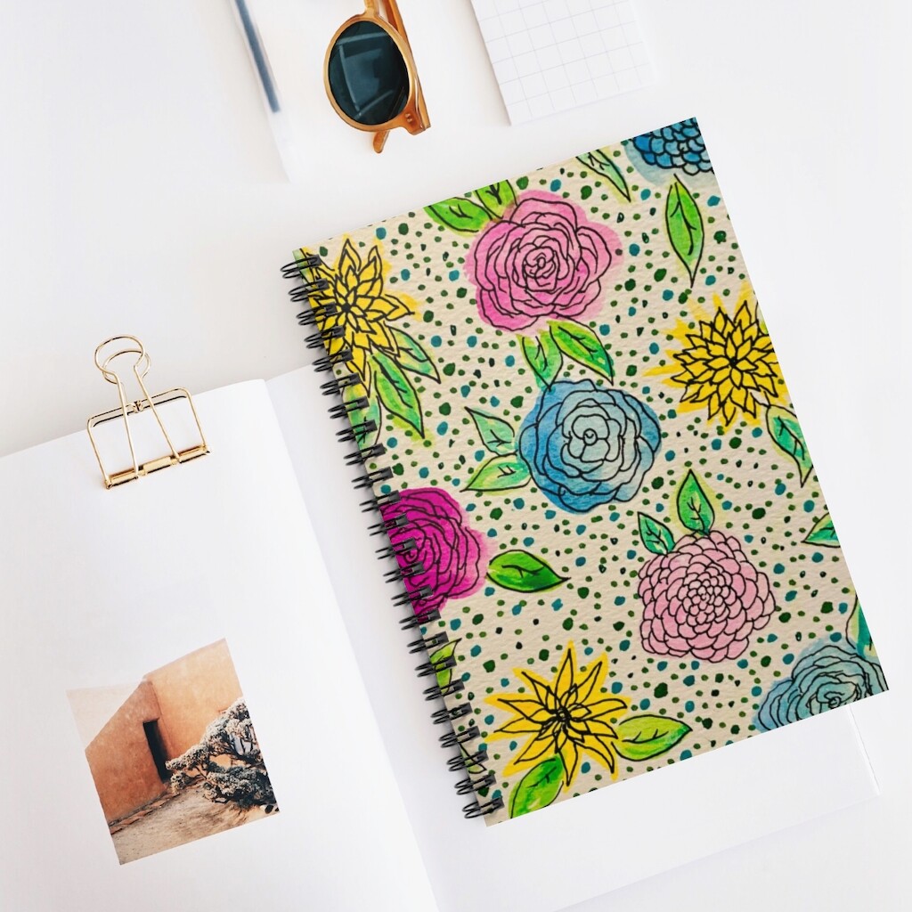 Flowers and Dots - Spiral Notebook - Ruled Line