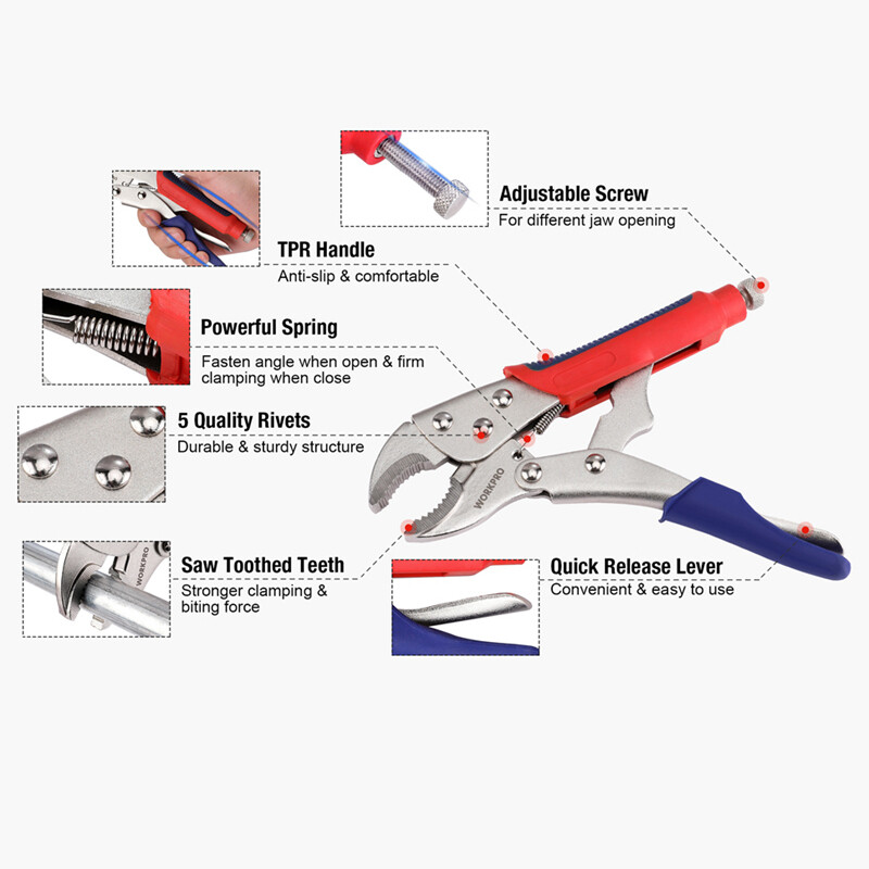 WORKPRO 3PCS Locking Pliers Set 10 Curved Jaw 7 Curved Jaw 6-1/2 Straight Jaw