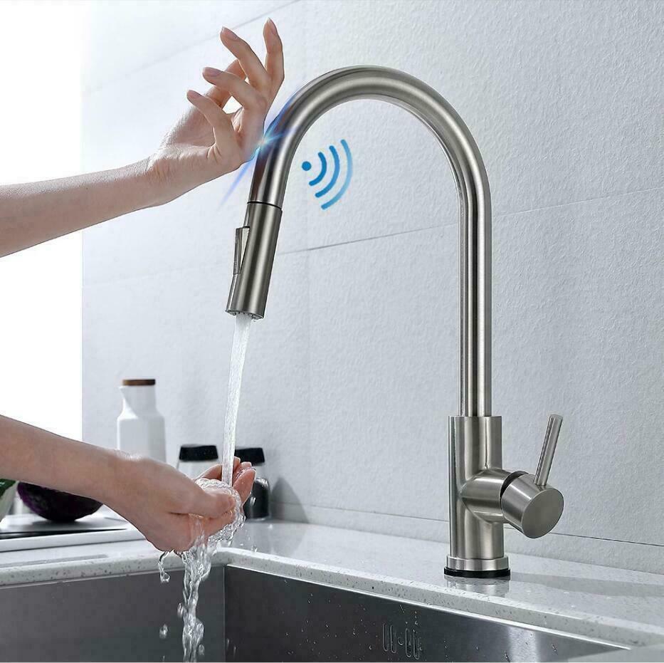 Brushed Sensor Touch on Kitchen Faucet Pull Down Sprayer Swivel Sink Mixer Tap