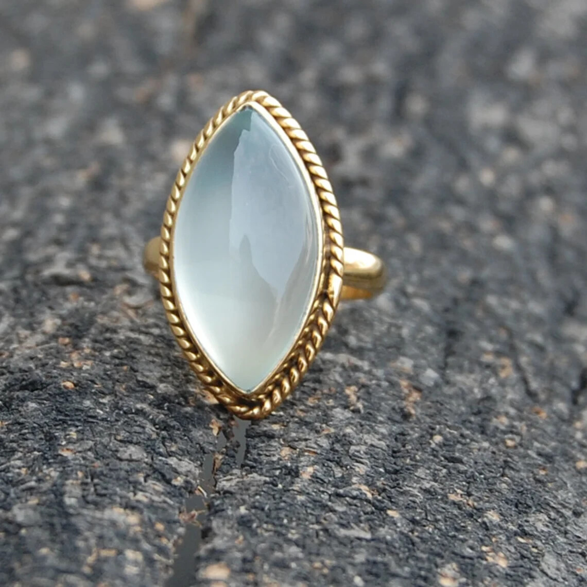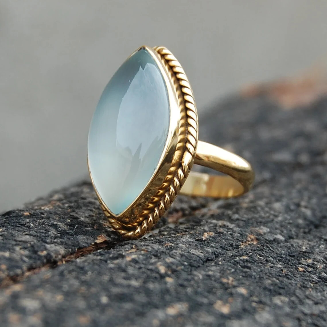 Aqua Chalcedony Gold Plated Ring 925 Sterling Silver Marquise Ring HandmadeRing