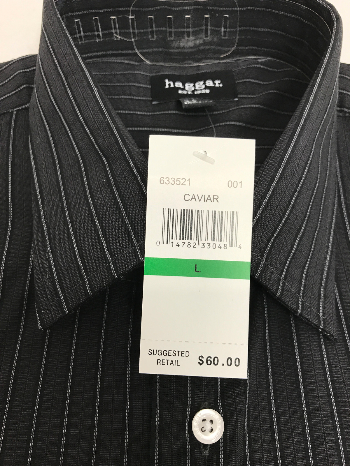 как выглядит Mens Haggar Dress Shirt Long Sleeve Caviar w/Black Stripes Brand New Size Large фото