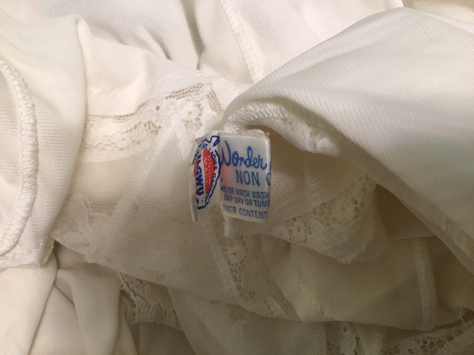 как выглядит Vintage Wonder Maid Non Cling 2932 Full Slip 38 Ivory Lace Union Made USA Flaw фото