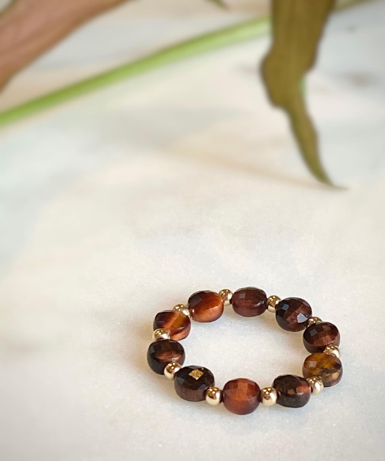 Tiger's Eye Stretch Ring with 14kt Gold Filled Beads