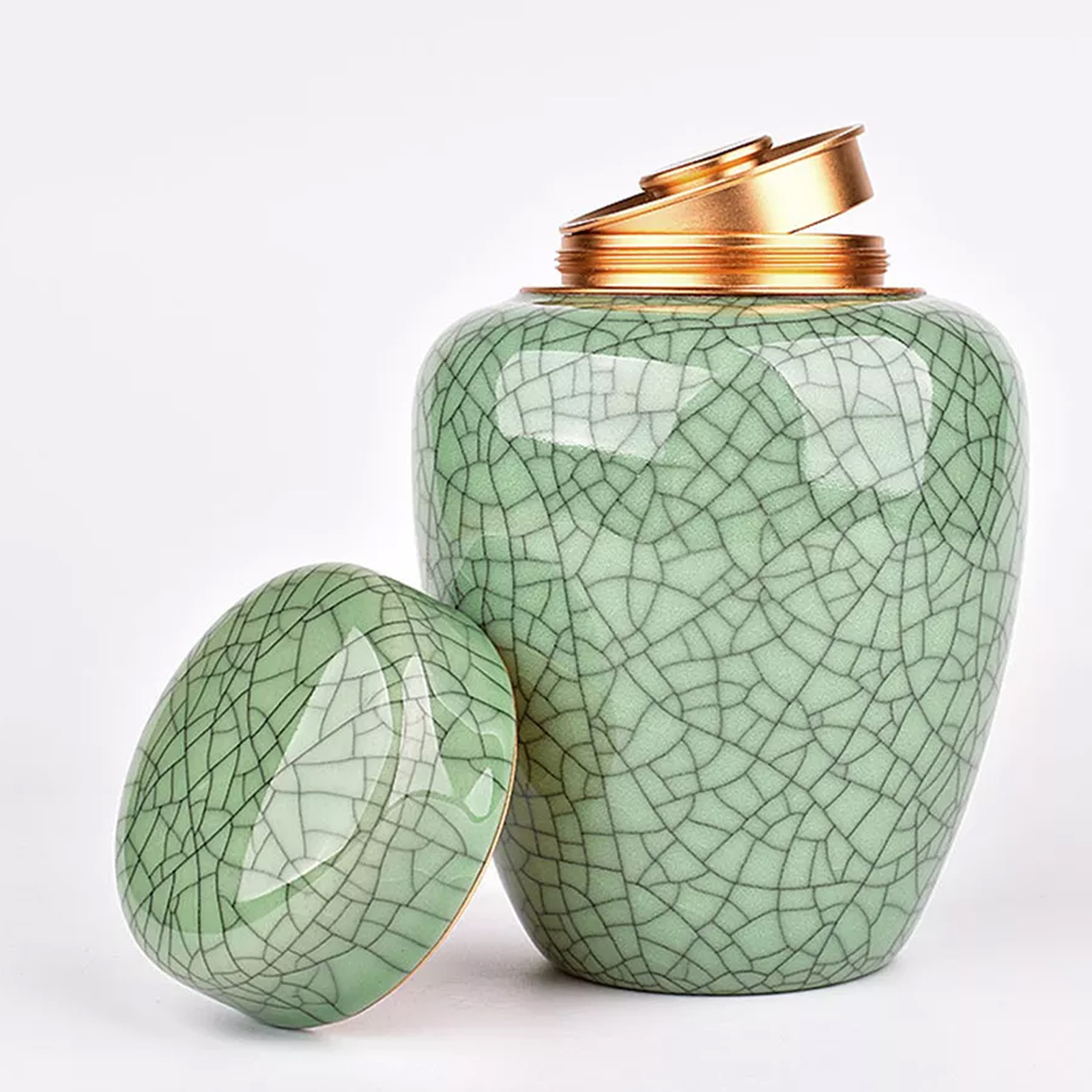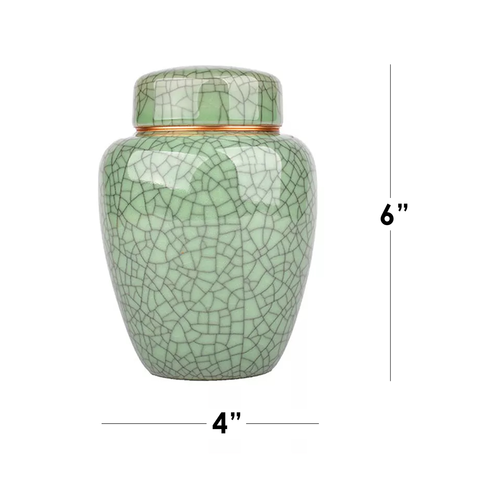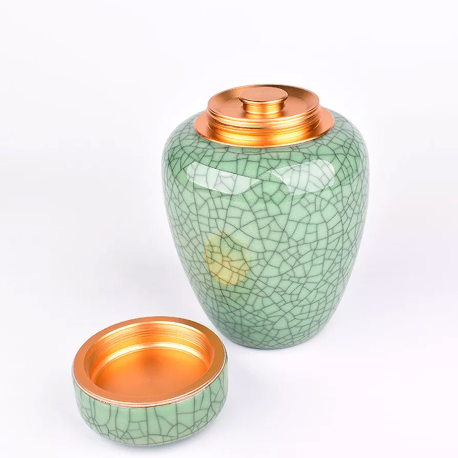 Ceramic Memorial Cremation Urn with Metal Lids for Human or Pet Ashes Green