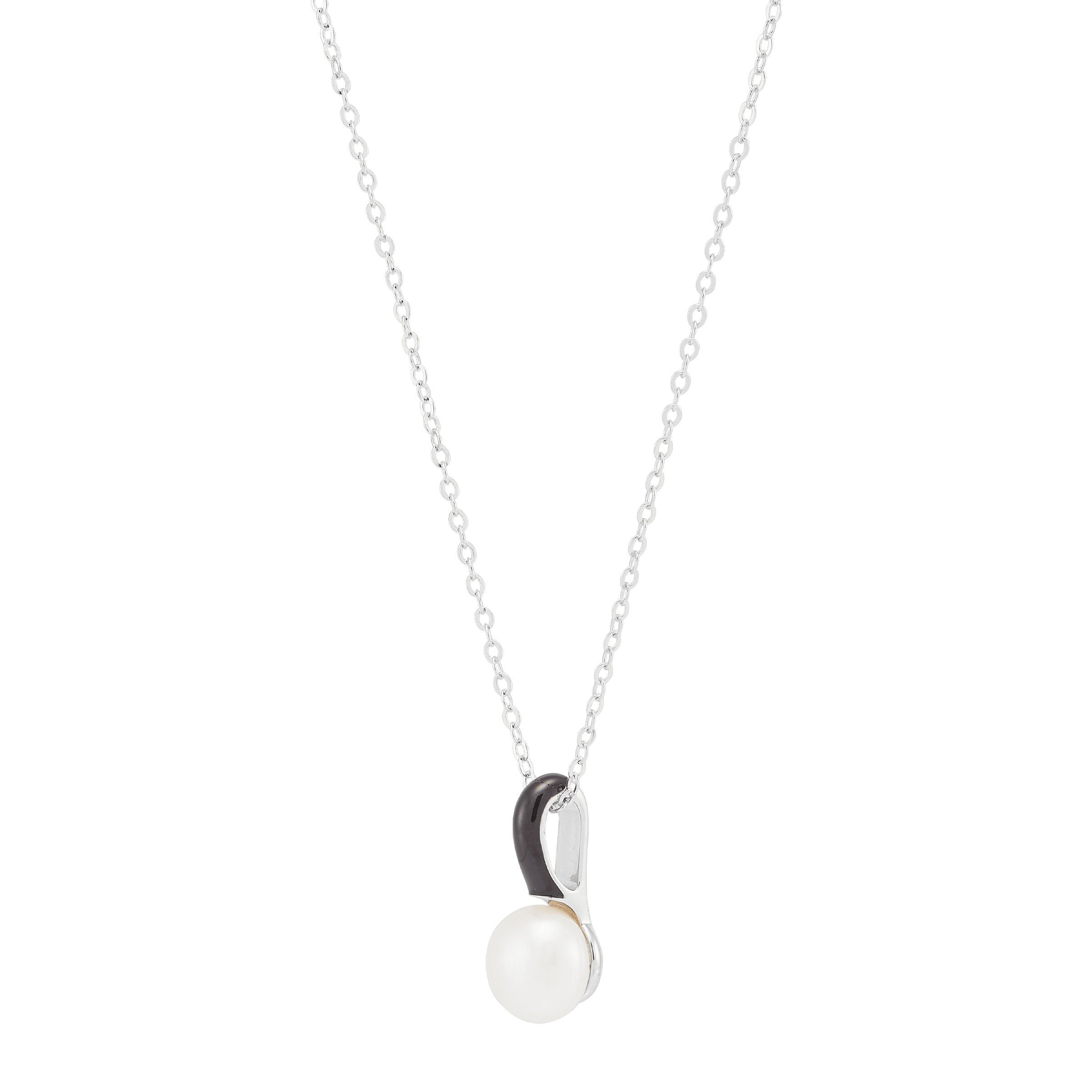 Welry Sterling Silver Freshwater Pearl Necklace with Black Enamel 16 1 1