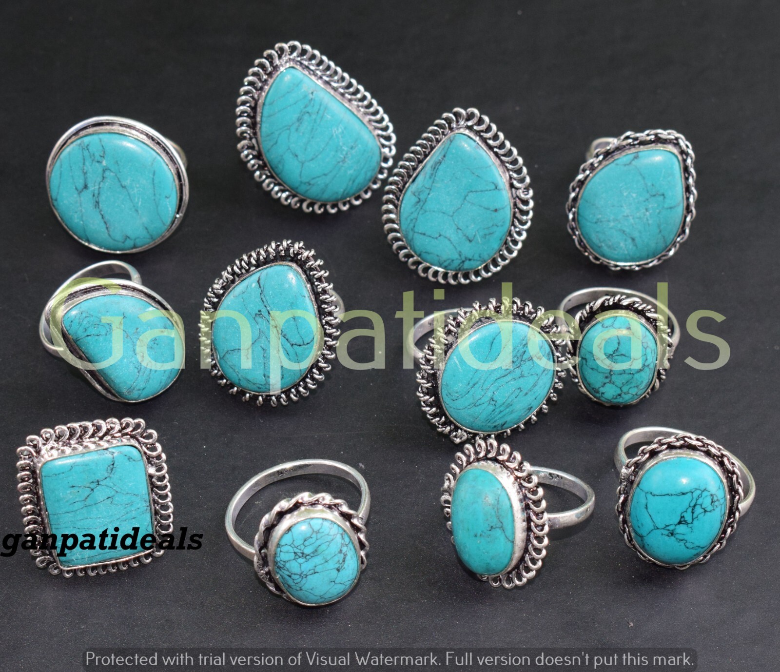 Bulk Sale Turquoise Gemstone Ring Wholesale Lot 925 Silver Plated Rings Lot