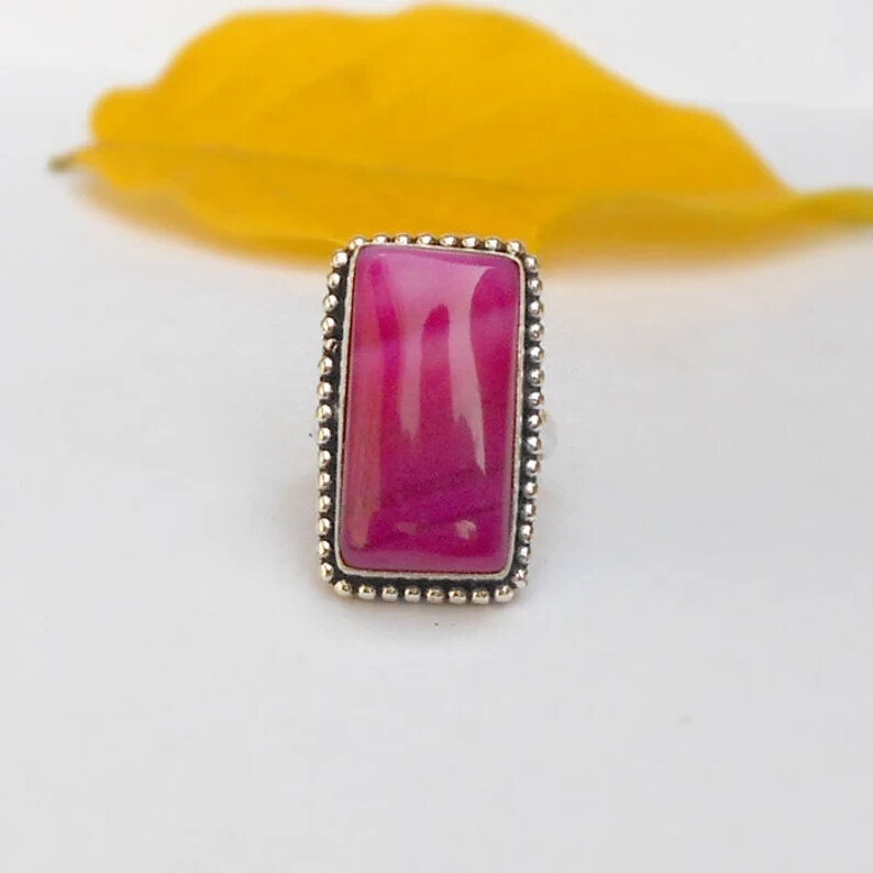 Solid 925 Silver Natural Pink Agate Gemstone Ring Statement Ring Unique Ring