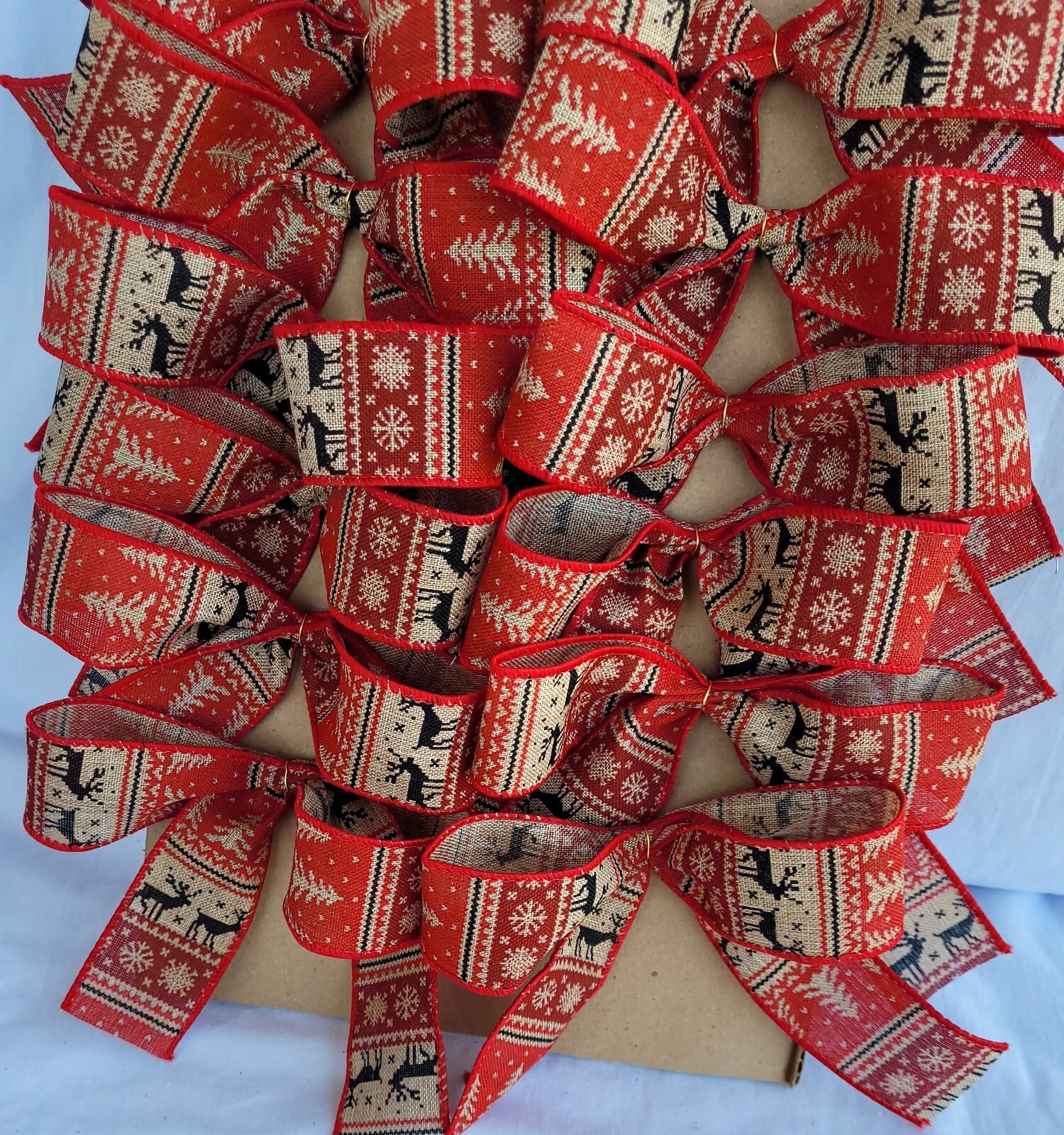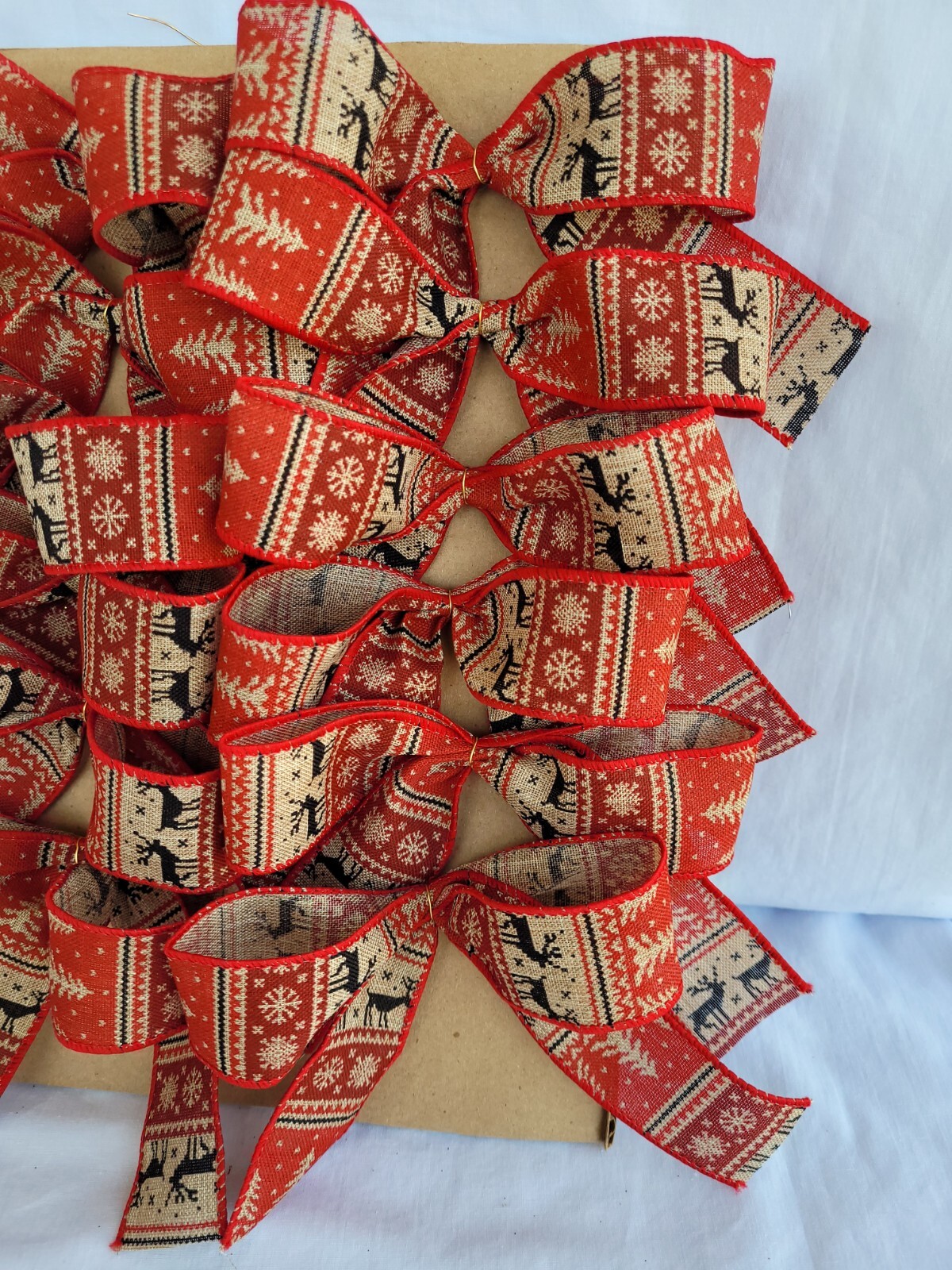 Set of 12 Small Handmade Christmas Tree Bows Package Bows Winter Design