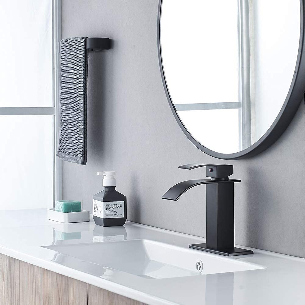 Waterfall Bathroom Basin Sink Faucet Single Handle Hole Vanity Mixer Tap w/Cover