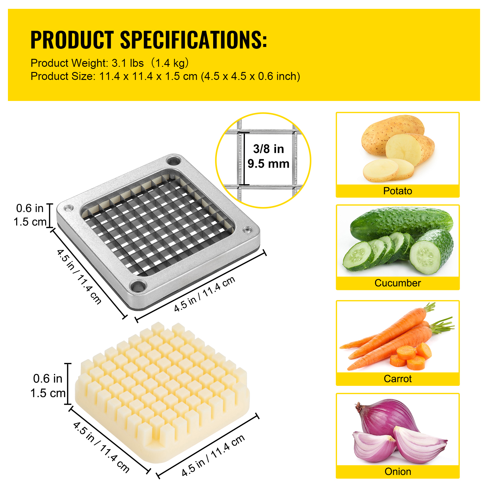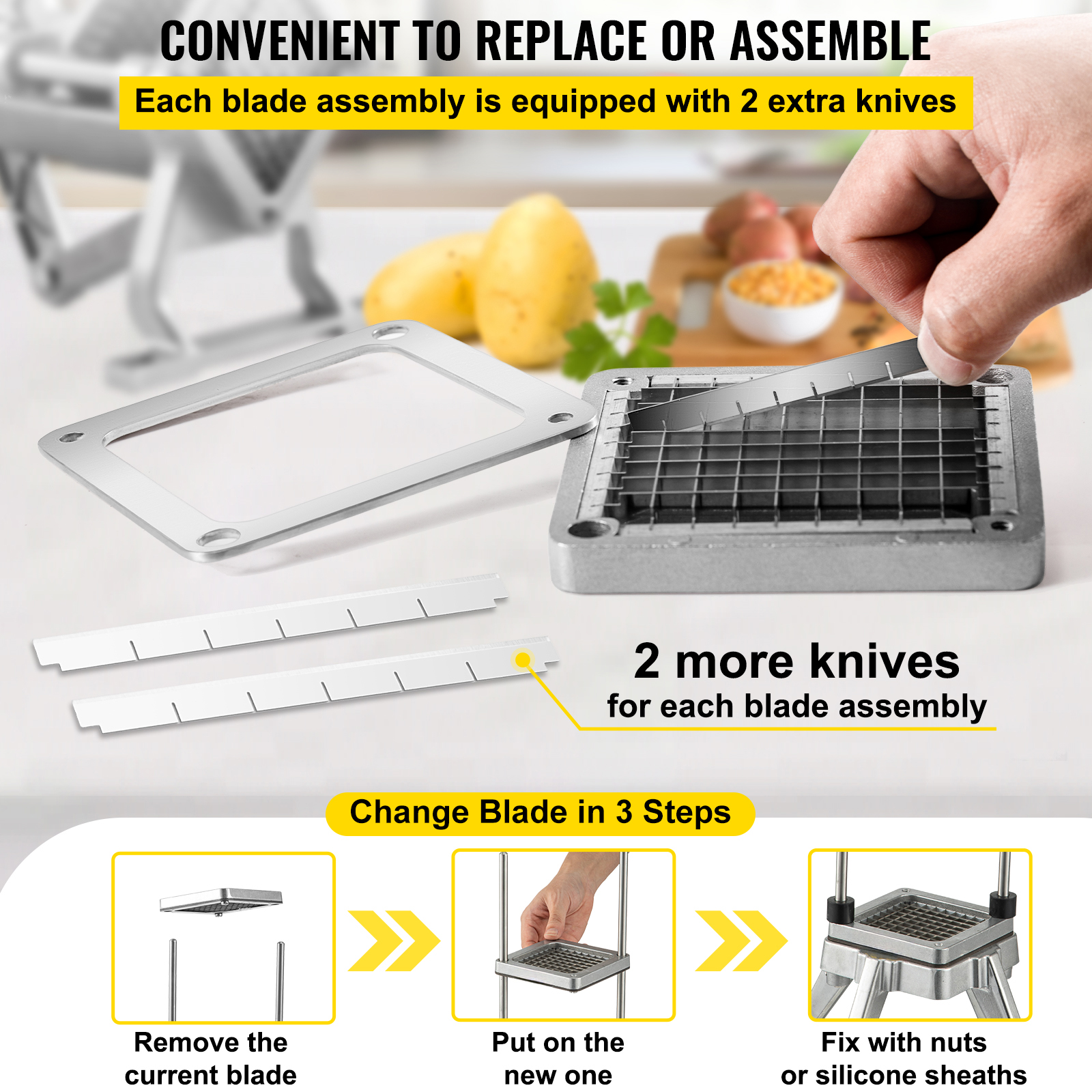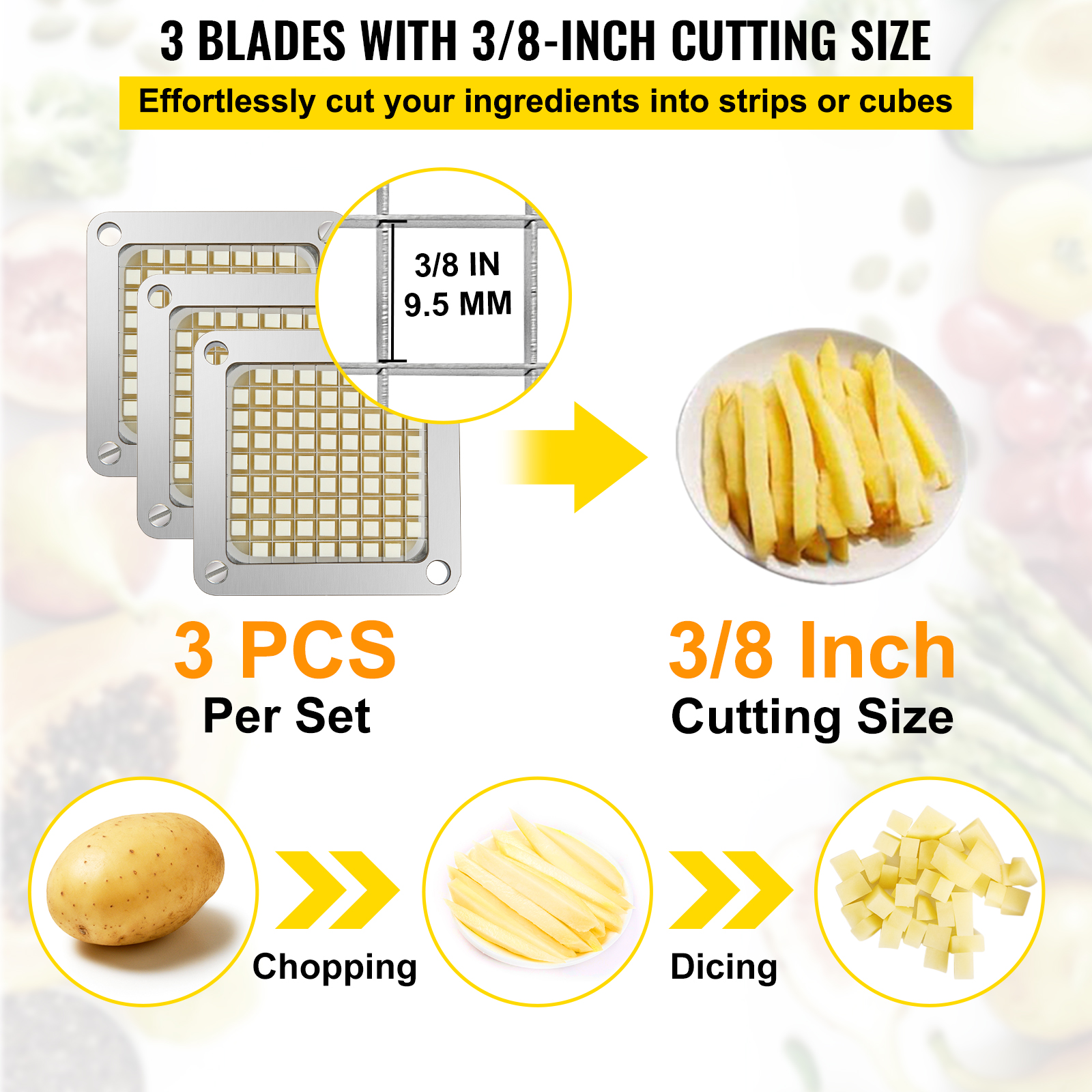 French Fry Cutter Chopper Replacement Blade 1/4 3/8 1/2-inch 3 Pieces