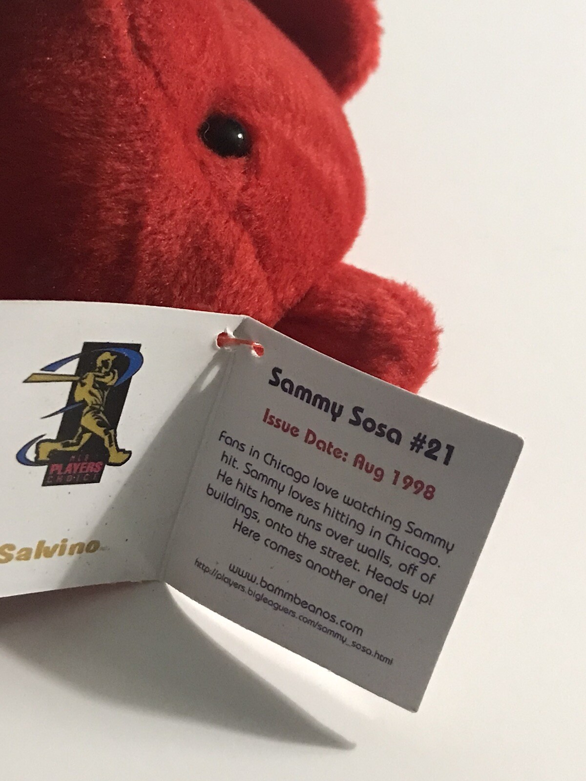 Salvino's BAMM BEANO'S Red Bear Sammy Sosa 21 1998 New with tag Vintage