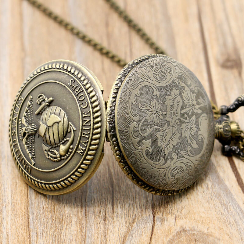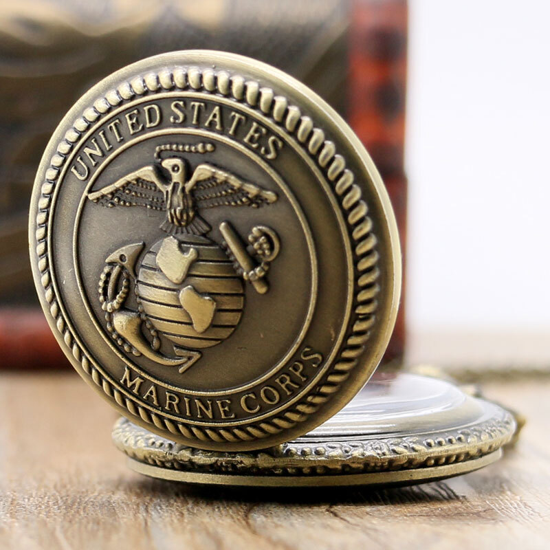 Bronze US Marine Corps Necklace Quartz Pocket Watch Chain Souvenir Gifts for Men