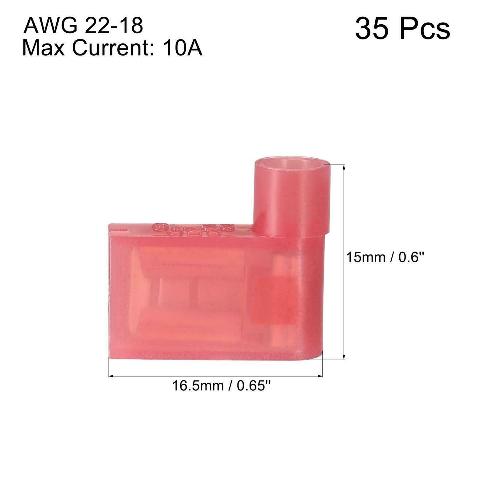 Wire Terminals Connector Nylon Insulated AWG22-18 Female Flag Type Red 35 Pcs