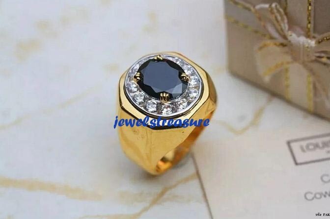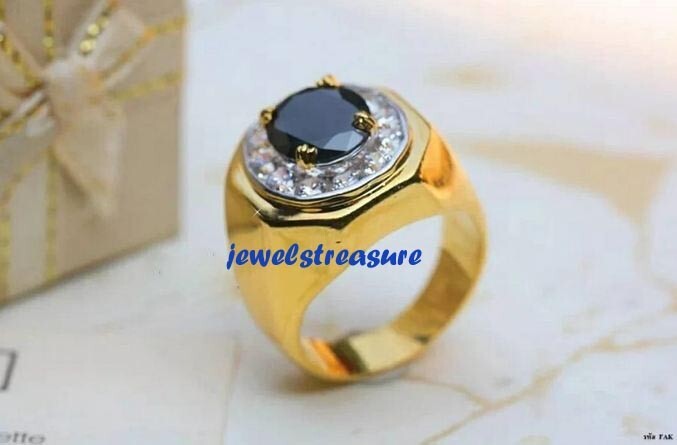 как выглядит Natural Black Onyx CZ Gemstones with 925 Sterling silver Gold Plated Ring 345 фото