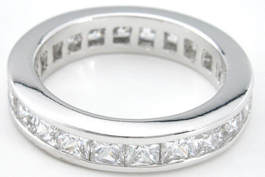 как выглядит 2.5 CT STERLING SILVER PRINCESS CUT CUBIC ZIRCONIA ETERNITY WEDDING BAND RING фото