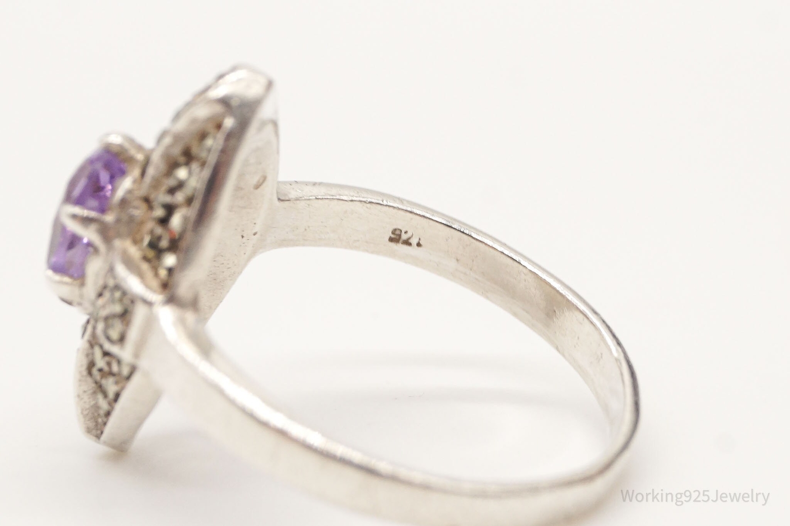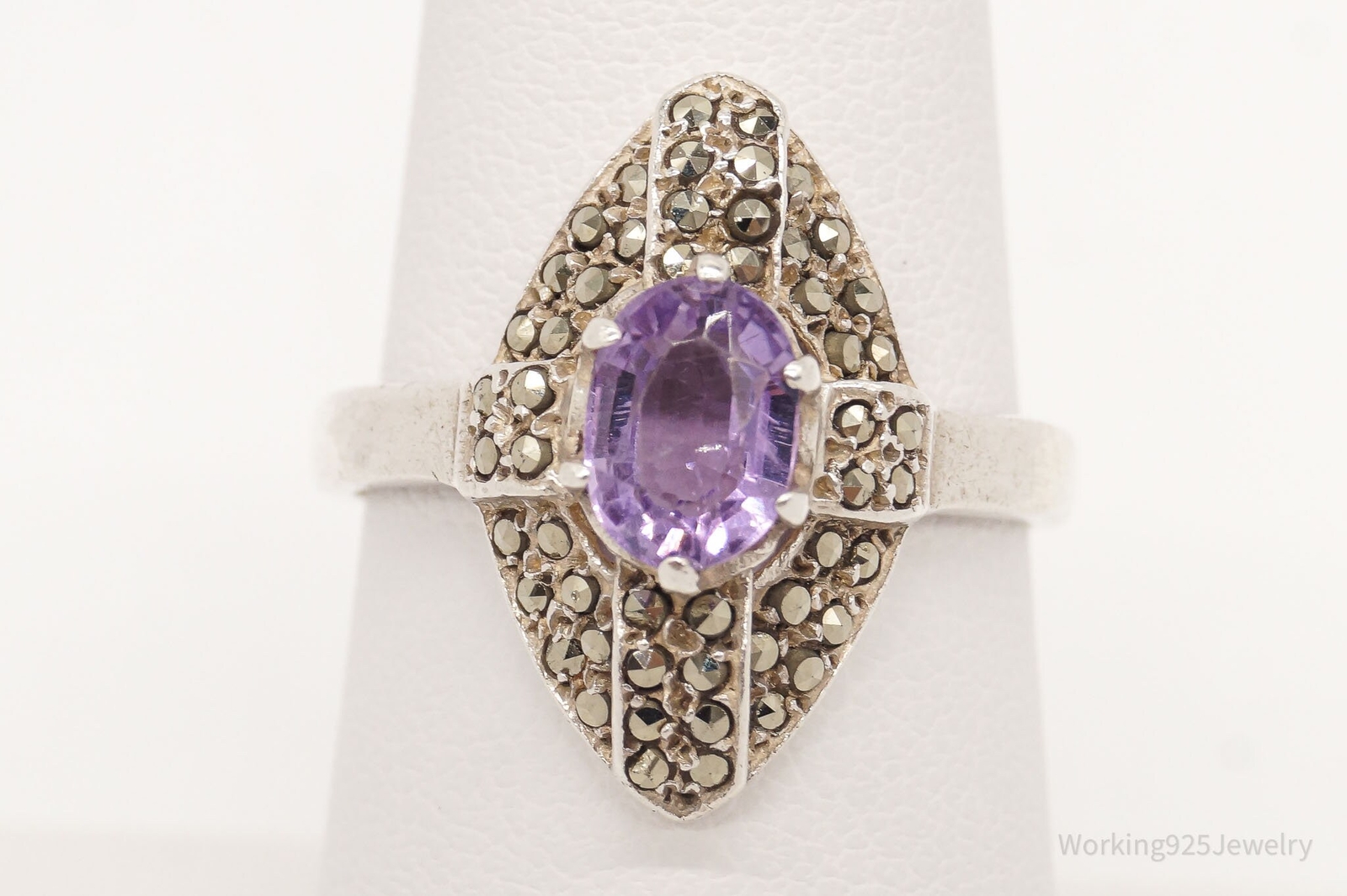 Vintage Amethyst Marcasite Sterling Silver Ring - Size 8