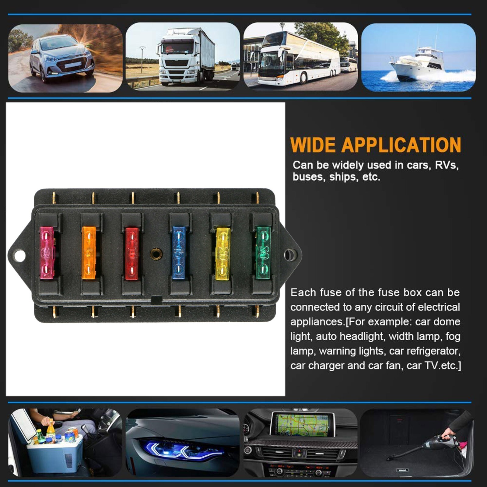 6 Way Blade Fuse Box Block Holder 12-24V Car Boat Power Distribution Panel Board