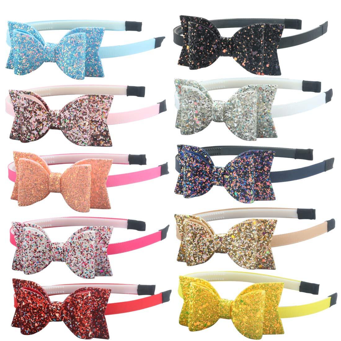 10pcs Glitter Sequin Bow Hairband Shiny Bow Knot Teeth Hair Accessories for Kids