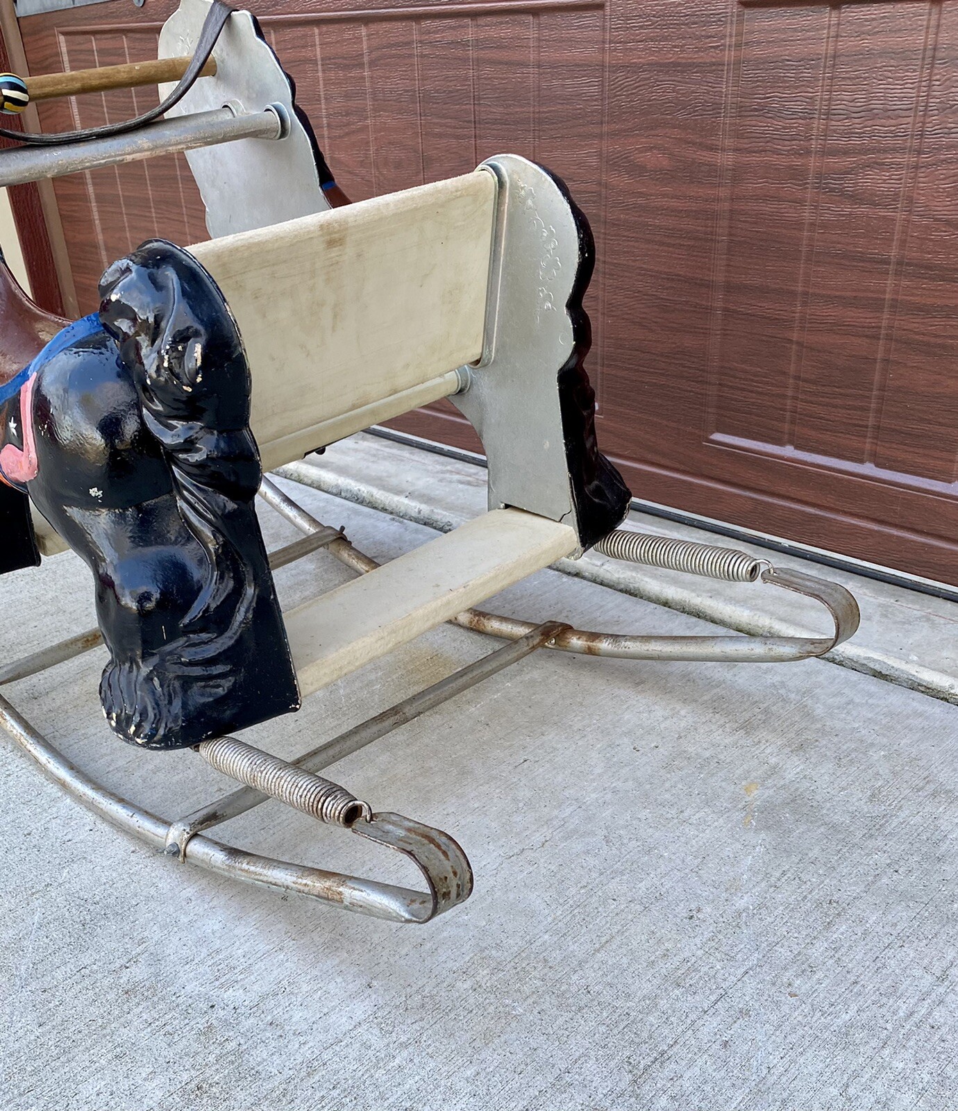 VINTAGE ROCKING HORSE HTF WONDER SHOO FLY SPRING HAND PAINTED BLACK/BLUE RARE