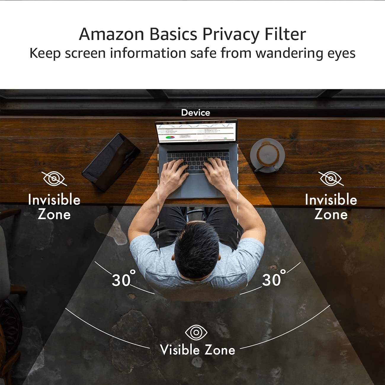 Amazon Basics Slim Magnetic Privacy Screen with Anti-Glare and Blue Light Filter