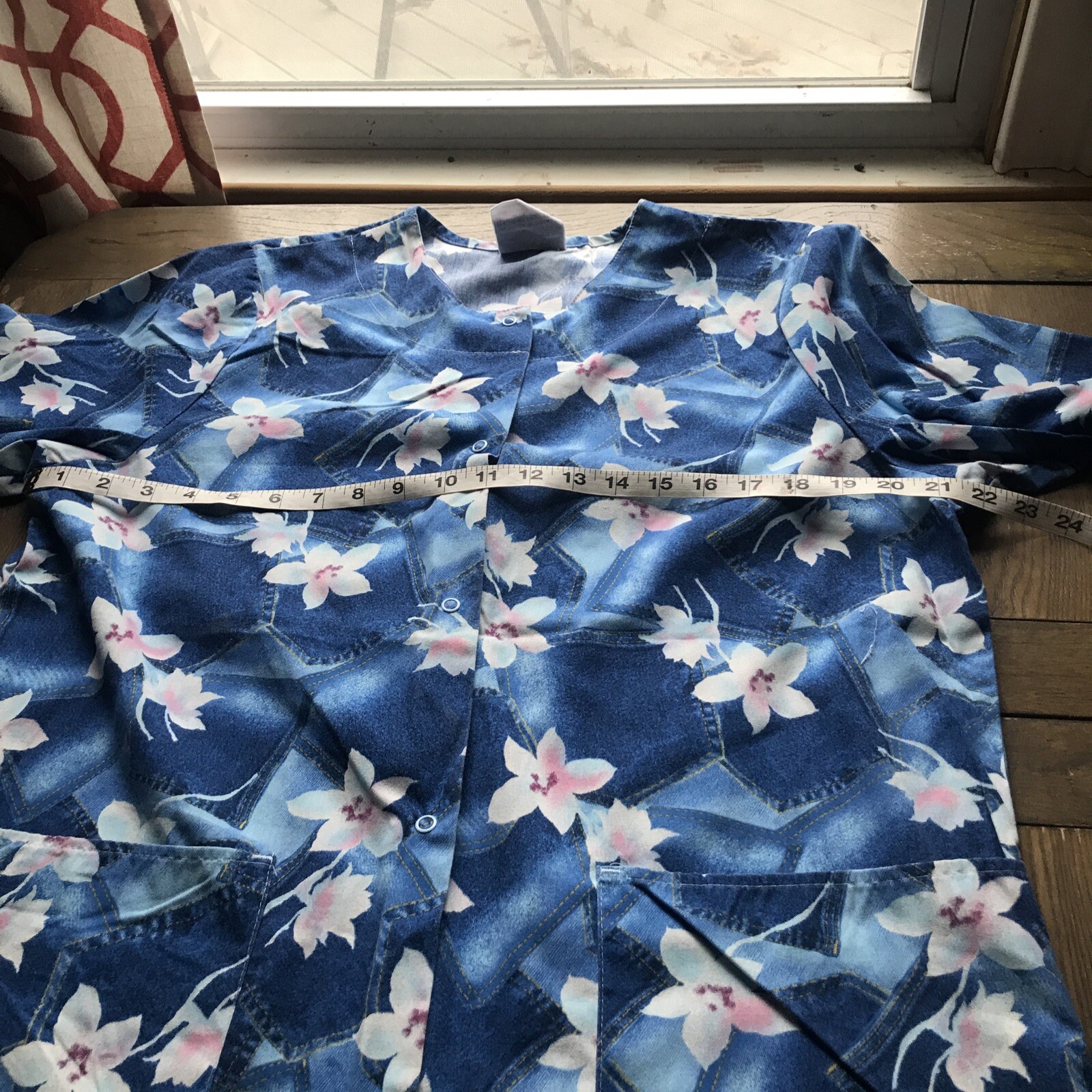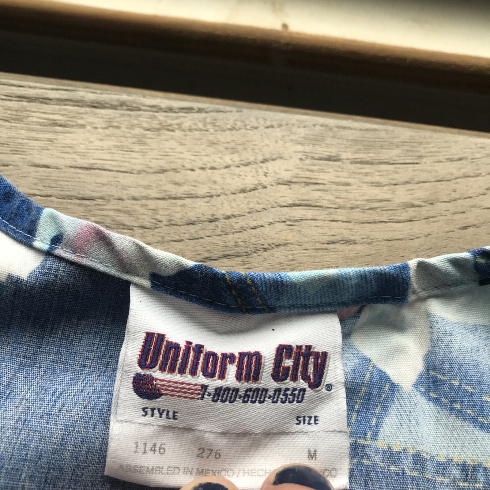 как выглядит Uniform City med ladies long slv scrub top jean pockets flowers jeans snap-up фото